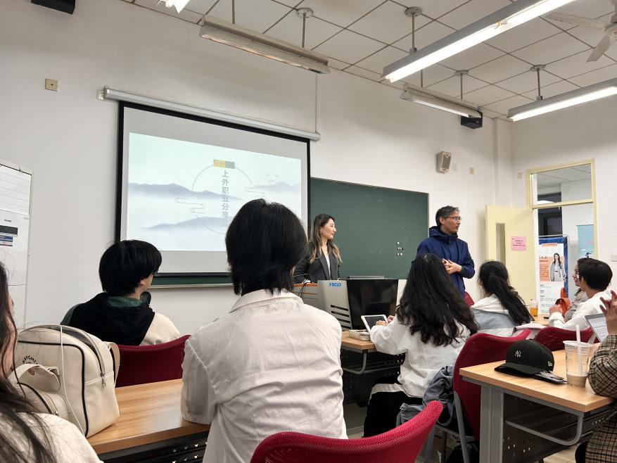 4月13日,国际教育学院举办“‘职’通未来——如何从海外销售助理成长为销售总经理?”职业指导讲座,由2018届商务英语专业优秀校友、上海金沓实业发展有限公司销售总经理肖亚丽主讲,学院党委副书记张守柱主持。