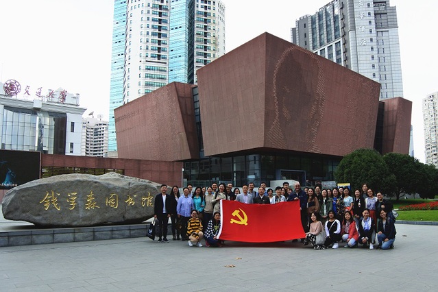 10月12日,国际教育学院党总支开展10月主题党日活动,全体党员师生共同参观位于上海交通大学徐汇校区的钱学森图书馆,本次活动旨在进一步弘扬“两弹一星”精神和爱国奋斗精神,党员同志们通过缅怀中国导弹之父,共忆中国航天岁月。副校长冯庆华、党委统战部部长刘蓉蓉应邀出席活动,与党员同志们亲切交流。