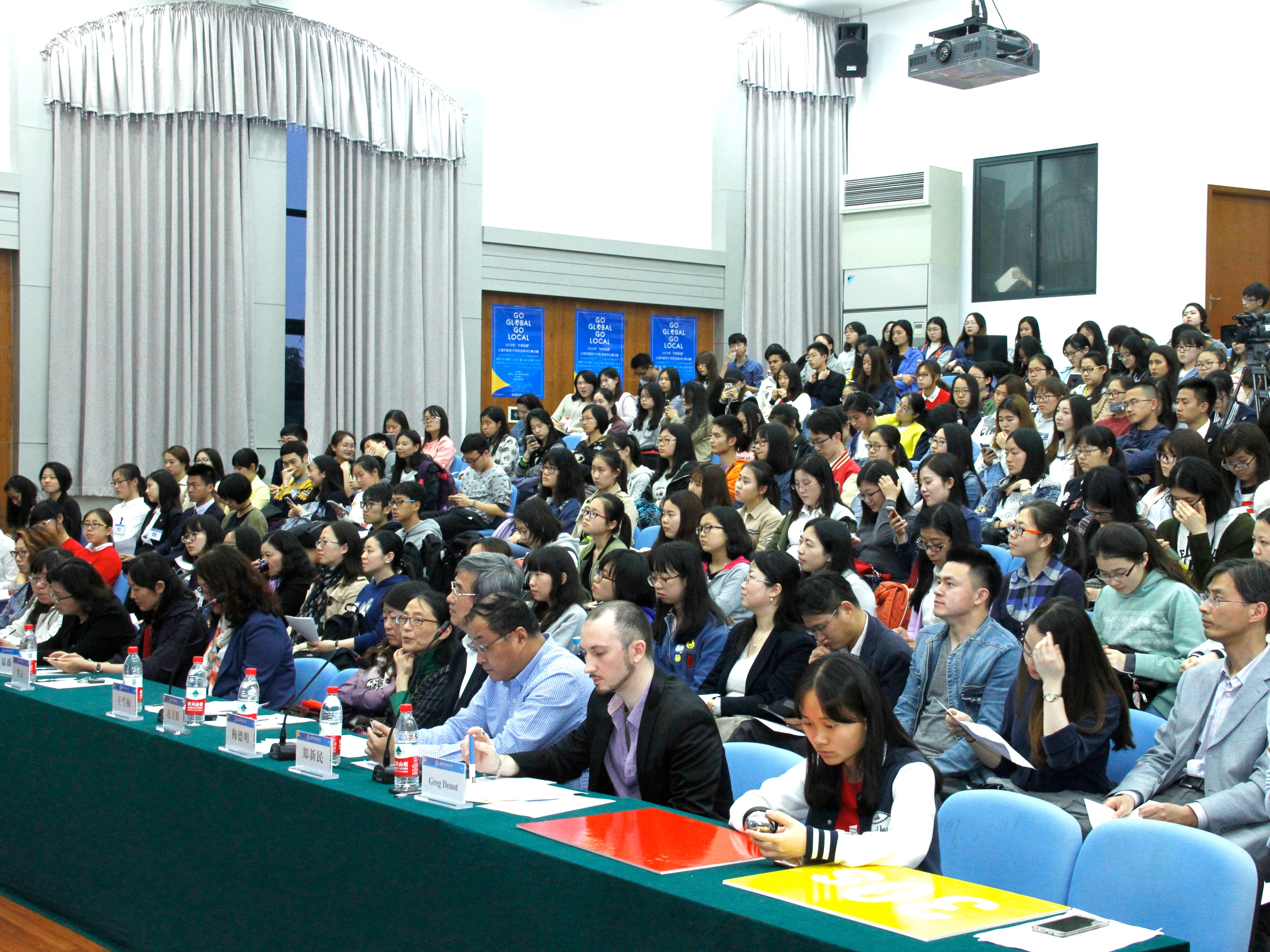 受师生欢迎的明星产品。2016年赛事由学校教务处和上海外语教育出版社联合主办,由国际教育学院承办。经过激烈的院系选拔,来自全校13所院系的15名选手进入决赛。本次比赛邀请梅德明教授、郑新民教授、王雪梅教授、赵美娟教授、Greg Denot先生担任评委,上海外语教育出版社常务副总编严凯、教务处副处长孙建、国际教育学院院长贺云、英语学院副院长许立冰和国际教育学院副院长聂薇应邀出席。